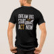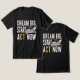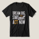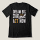 Abrace seus sonhos com nossa camiseta *"Dream Big, Start Small, Act Now"*! Este design inspirador serve como um lembrete diário para tomar medidas em relação aos seus objetivos, um passo de cada vez. Disponível em várias cores e estilos, é perfeito para quem está pronto para fazer a diferença. Pegue a sua e comece sua jornada hoje!