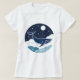 Ilustração química de uma baleia azul flutuando sobre as nuvens sob um céu azul.