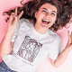 Uplifando palavras com a citação Sonho sem Medo em um Script elegante, e uma ilustração de uma menina Em um boné e folhas rosa.