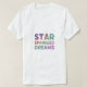 Esta camiseta branca clássica apresenta o texto "Sonhos com Espingarda Estelar" em uma multicor ousada e angustiada. Cada palavra tem uma textura única e uma cor diferente, dando ao design uma sensação de safra.