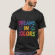 Esta camiseta vibrante apresenta a mensagem "Dreams in Colors" em um design de multicores impressionante. Cada letra explode com uma matiz diferente, criando um olhar lúdico e otimista que reflete o potencial ilimitado de seus sonhos. Quer você seja um criativo caçador ou um sonhador de coração, esta camisa é a maneira perfeita de expressar seu espírito vibrante e inspirá-los ao seu redor.
