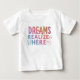 Esta camiseta apresenta a frase motivacional "Dreams Realize Here" em um vibrante gradiente multicolorido. Cada palavra transita suavemente para a próxima, criando um design dinâmico e atraente.