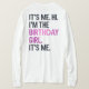 Celebre seu dia especial com essa camiseta de aniversário! Perfeito para a aniversariante que adora brilhar, esta árvore apresenta um design de texto divertido e brilhante que declara "Sou eu. Olá. Eu sou a garota de aniversário. Sou eu." Feito com tecido confortável e de alta qualidade, que vai te fazer sentir fabuloso o dia todo. Personalize com sua idade ou nome para um toque verdadeiramente pessoal. Quer você esteja tendo uma grande festa ou um pequeno encontro, esta camisa certamente fará você se sentir como a estrela do show. Disponível em vários tamanhos e cores para se adequar à sua preferência. Torne o seu aniversário memorável com esta camiseta divertida e festiva!