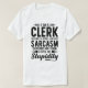 Sou um Clerk, meu nível de sarcasmo depende do seu nível de estupidez. Procurando uma camisa engraçada do Clerk? Você está no lugar certo. Pegue esta camisa engraçada do Clerk para você ou seu amigo, colega de trabalho, mãe, pai ou avô que é o Clerk. Esta design também é excelente como presente para aniversários, Natal, Ação de Graças e general.