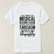 Sou um funcionário do registro médico. Meu nível de sarcasmo depende do seu nível de estupidez. Procurando uma camiseta engraçada do funcionário? Você está no lugar certo. Pegue esta camisa engraçada do registro médico para você ou seu amigo, colega de trabalho, mãe, pai ou vovô que é funcionário de registros médicos. Esta design também é excelente como presente para aniversários, Natal, Ação de Graças e general.