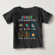Playful space themed artwork made for curious kids and young students. Cute symbols like UFO, planet, moon, stars, rocket and alien help children explore space science and basic astronomy in a fun and friendly way.