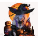 Uma bruxa com cerveja que é feita com feitiço. Design com tipografia. Preto e laranja como design de halloween.