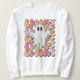 Esta divertida e festiva design do Dia das Bruxas apresenta uma ilustração fantasma clássica frente e centro, cercada pela palavra "Spooky" repetida em uma fonte ousada e espumante. O texto é colocado em cores vibrantes e retrorinspiradas, como pintas moles, púrpuras e laranjas, criando um contraste lúdico contra a simples figura branca do fantasma. Os olhos negros sem expressão do fantasma adicionam um toque de encanto estranho, enquanto a tipografia ondulada e empilhada dá à design um ranho, uma sensação nostálgica.