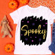 Entre na temporada de Halloween com nossa deliciosa camiseta branca "Spooky Stars". Este design de capricho mostra a palavra "Spooky" em um encantador roteiro amarelo, rodeado por estrelas roxas e pontos cor-de-rosa. É a mistura perfeita de diversão festiva e estilo casual, fazer excelente escolha para festas de Halloween, truques ou tratamentos, ou simplesmente abraçar as vibrações assustadoras durante toda a temporada. Esta camiseta é certamente uma favorita para quem ama a magia do Halloween.