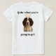 English Springer Spaniel (liver and white) looking devilishly mischievous - complete with devil horns on the front of this t shirt with an angelic springer spaniel on the back complete with halo.