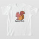 A warm, hand-inked squirrel illustration with pink body and orange-yellow tail, bold outlines and vintage linework. Ideal for cozy apparel and autumn-themed items.