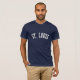 Verifique para fora este t-shirt de St Louis! É você de St Louis, Missouri? Você tem um amigo ou um membro da família que amem St Louis, Missouri? Em caso afirmativo, este t-shirt da "bandeira" é exatamente o presente que você está procurando! As características de design "St Louis" na rotulação branca arqueada na pia batismal clássica da faculdade.