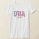Este design moderno vermelho, branco e azul "EUA" apresenta a palavra "EUA" em uma fonte universitária com um laço coquette diretamente abaixo.