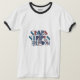 Um design de camiseta corajoso e colorido com as palavras "Stars Stripes Freedom" num arco-íris vibrante espalhou-se pelo peito. Perfeito por mostrar seu patriotismo de uma forma única e atraente.