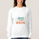 A design da camiseta "HONE YOUR HORIZON" apresenta uma tipografia ousada e moderna com a frase que passa pelo peito. As letras são afiadas e elegantes, simbolizando foco e autoaperfeiçoamento. No fundo, uma linha de horizonte sutil se estende, representando um potencial e crescimento ilimitados. O design geral é minimalista, mas motivacional, encorajando o usuário a refinar sua visão e ampliar seus limites.