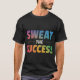 Esta t-shirt apresenta a mensagem motivacional "Sweat the Success" numa letra de bloco a cores arrojada e multicolor. A design é atraente e perfeita para quem não tem medo de colocar no trabalho de duro para alcançar seus objetivos.