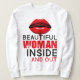 Diseño audaz y dramático que combina Labios de mujer en un vibrante rojo intenso, realista y texturizado, con detalles sutiles como manchas de labial, goteos y reflejos brillantes que lo hacen resaltar. El alto contraste crea un impacto visual impactante y moderno. Debajo, la frase "Beautiful woman inside and out." se presenta en una tipografía audaz y atrevida, complementando la actitud del diseño. Este estilo es perfecto para aplicaciones en camisetas, playeras y arte contemporáneo, transmitiendo confianza, elegancia y empoderamiento.