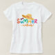 O verão vibe com um chapéu de praia e óculos escuros e camiseta de design para mulheres que é perfeita para ajudá-la a entrar naquele modo de férias lindo. Este design colorido apresenta letras de cores vibrantes e uma ilustração de um sol amarelo e vibrações na caligrafia na moda.