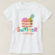 O verão vibe com uma camisa de mulher design bolsa de praia que é perfeita para ajudá-lo a entrar naquele modo de férias bonito. Este design colorido apresenta letras de cores vibrantes e uma ilustração de um sol amarelo e vibrações na caligrafia na moda.