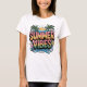 Traga uma explosão de sol para a sua vida com este vibrante trabalho de arte de "Summer Vibes", com alta tipografia retrógrada, palmeiras tropicais, e um pôr do sol brilhando sobre o oceano. Com suas letras brilhantes de gradiente no arco-íris e elementos lúdicos como fatias de citros, água salgada e um coquetel frutado de verão, este design capta perfeitamente a essência de dias quentes e despreocupados. Este impressão de arte está certamente irradiando alegria e energia de férias. O desenho divertido, estilo cartoon é ideal para fãs de arte branca, amantes de praia, e qualquer um que queira espalhar vibrações ensolaradas positivas. Que esta cena alegre traga uma dose de calor e relaxamento para a sua vida ou que dê como presente a alguém especial!