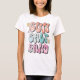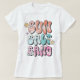 Uma tipografia colorida e bonito, com estilo groovy, dizendo para as férias de verão: Sol, sal, areia.