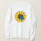 A drawing of a cartoon sunflower and a blue butterfly. This yellow floral design is a gift idea for summer lovers, flower and nature lovers, and autumn lovers.