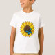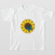A drawing of a cartoon sunflower and a blue butterfly. This yellow floral design is a gift idea for summer lovers, flower and nature lovers, and autumn lovers.
