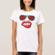 Cara de abstrato com óculos de sol e um sorriso de dentes com lábios vermelhos. Coloque seu rosto feliz.