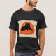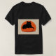 This design features a striking black cat with a confident, slightly grumpy expression, lounging atop a vibrant orange circular form that resembles a regal throne. Set against a soft beige background, the cat’s sleek silhouette and intense gaze create a captivating contrast with the warm hue beneath it.