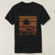 Uma t-shirt gráfica com uma silhueta de um helicóptero militar medevac contra um fundo solar. Design único para os entusiastas da aviação.