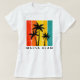 Marsa Alam, de uso feminino, vintage sunset T-Shirt design para apreciar o verão no estilo. Esta design de camiseta apresenta a palavra 'Marsa Alam' em faixas coloridas de sunset com palmeiras para dar as boas vindas ao verão.