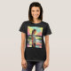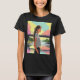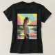 Essa ilustração vibrante e artística captura um momento sereno de uma pessoa parada por um rio com uma ponte ao fundo. O céu é pintado em tons pastéis de amarelo, rosa e azul, criando uma atmosfera de pôr do sol sonhadora. A pessoa, de cabelo comprido amarrada em rabo de cavalo, está vestida com uma camiseta branca casual e calças pretas, exuando uma vibração relaxada e contemplativa. O reflexo do céu colorido na água adiciona à cena tranquila e pitoresca, fazer perfeito para uma camiseta que celebra momentos pacíficos na natureza.