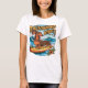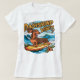 Um cachorro giro andando de surfe em uma enorme aventura de praia perto de uma ilha tropical, incorporando vibrações de praia sem carinho com as palavras vibrações de dachshund.