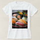 The colorful sushi rings stand out against the round black plate. The elegant and well-balanced visuals quietly speak to the beauty of Japanese cuisine.