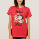 Esta camisa de amor sushi é o presente perfeito para você ou seu companheiro de sushi. Ele retrata quatro preciosos de sushi em um design ao estilo kawaii com rostos sorridentes e blush. A design tem corações flutuantes ao seu redor com as palavras "Sushi Love."