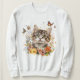 Camiseta Sweatshirt com Kitten Adorável com Flores