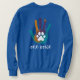 Camisola azul com o logotipo MPA e impressão de uma pata de voz na impressão.