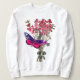Um grande buquê de ervilhas rosa e vermelha atraem uma borboleta colorida nesta linda camisola. O presente perfeito para quem ama flores, jardinagem ou natureza.