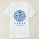 Syros, T-Shirt branco de Grécia, com a bandeira nacional de dentro, um círculo grego azul asteca, e o nome da ilha escrito em grego. Esta camiseta é ideal para você vestir enquanto está aproveitando suas férias na bela ilha grega de Syros. Você também pode dar isto como um presente da Grécia para qualquer um que goste desta camiseta.