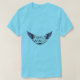 A design da camiseta apresenta o texto "Asas da família" impresso em um padrão vibrante e multicolorido, capturando um sentido de unidade e união.