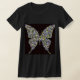 O T preto da mulher com a arte que caracteriza uma borboleta psicadélico na parte dianteira.