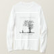 Uma design de camiseta branca com uma silhueta serena de um homem parado debaixo de uma árvore, contra um cenário branco sonhador. Combinando gradientes leves e texturas sutis, evoca calma e introspecção. Perfeito para aqueles que amam designs artísticos e serenos.