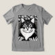 Teto em um retrato preto e branco de um gato pelado com olhos largos, em um jardim cercado de flores e folhagem.