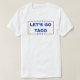 Camiseta clara que diz "Vamos Ir, Taco!"