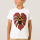 T-shirt das Crianças Aranha Tarantula. Tarantula numa folha vermelha em forma de coração. Design gráfico para amantes tarântulas.