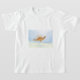 Tartaruga Marrom nadando perto do fundo arenoso do oceano, com a luz do sol de verão filtrando através da água azul clara acima. Design com um tema pastel quente, tropical, arenoso, praia. Traga os maiôs e snorkels.