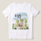 Lama de aquarela bonita com detalhes decorativos na cabeça. O fundo é uma paisagem desértica com cactos e areia. Texto bonito, Amo-te.