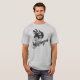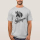 Sorrir o balancim de esqueleto, no chapéu alto com cabelo e guitarra, enegrece/branco, em t-shirt.