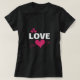 Camiseta preta elegante para as mulheres, adornada com uma inscrição charmosa de "AMOR" e uma seta de piercing cardíaco, misturando estilo com afeto