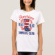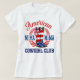 Esta camiseta de cor clara apresenta um par de botas de vaqueiro decoradas com a bandeira americana. O texto "Mama Americana" é exibido acima das botas, e "Clube Cowgirl" está abaixo, tudo em uma fonte vermelha e em negrito. Uma fita cor-de-rosa enfeita uma das botas, acrescentando um toque de feminilidade. Esta camisa mistura perfeitamente o orgulho patriótico com o estilo da vaquinha.
